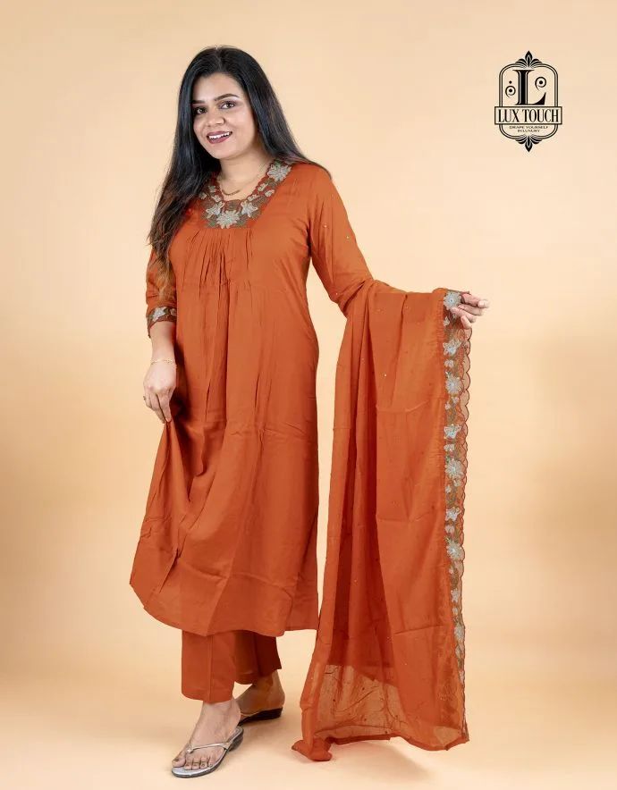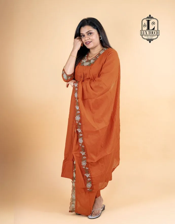 Our Premium Cotton Suit Set combines comfort and style in one chic ensemble. Made from premium, breathable cotton, this set includes a kurta, matching salwar or pants, and a beautifully designed dupatta. Perfect for both casual and semi-formal occasions, it offers a lightweight, comfortable fit with a range of vibrant colors and prints. Easy to maintain and versatile, this suit set ensures you look elegant while staying cool all day.