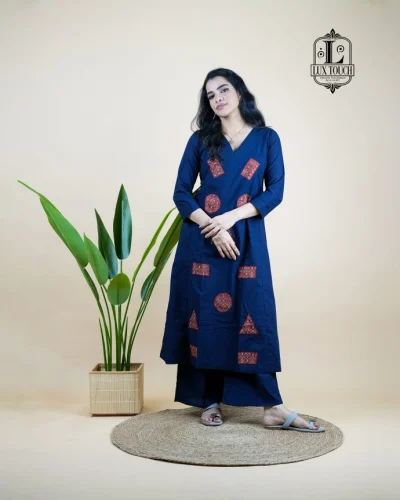 SKU: FR4-NECK EMBR-BLUE Category:Dress / Frocks Tag:Casual