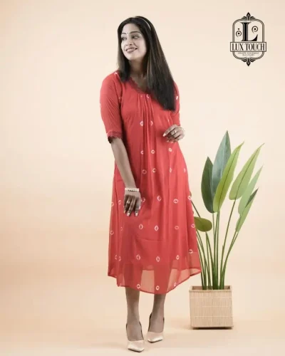 This Embroidery Frock is crafted to perfection with high-quality fabric that is soft, breathable, and comfortable for all-day wear. The frock showcases exquisite embroidery patterns across the bodice, adding a sophisticated touch to its overall design. Its flowing silhouette flatters all body types, creating an effortlessly graceful look. With a comfortable fit and easy-care material, this frock is a versatile addition to your wardrobe, suitable for weddings, parties, and festive gatherings.