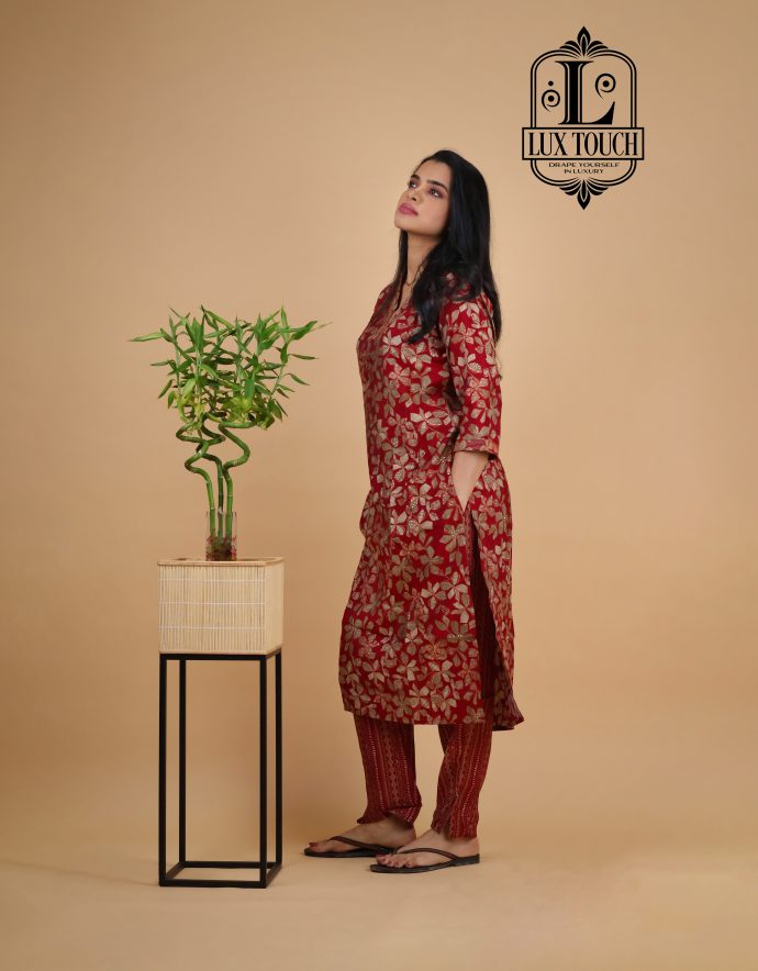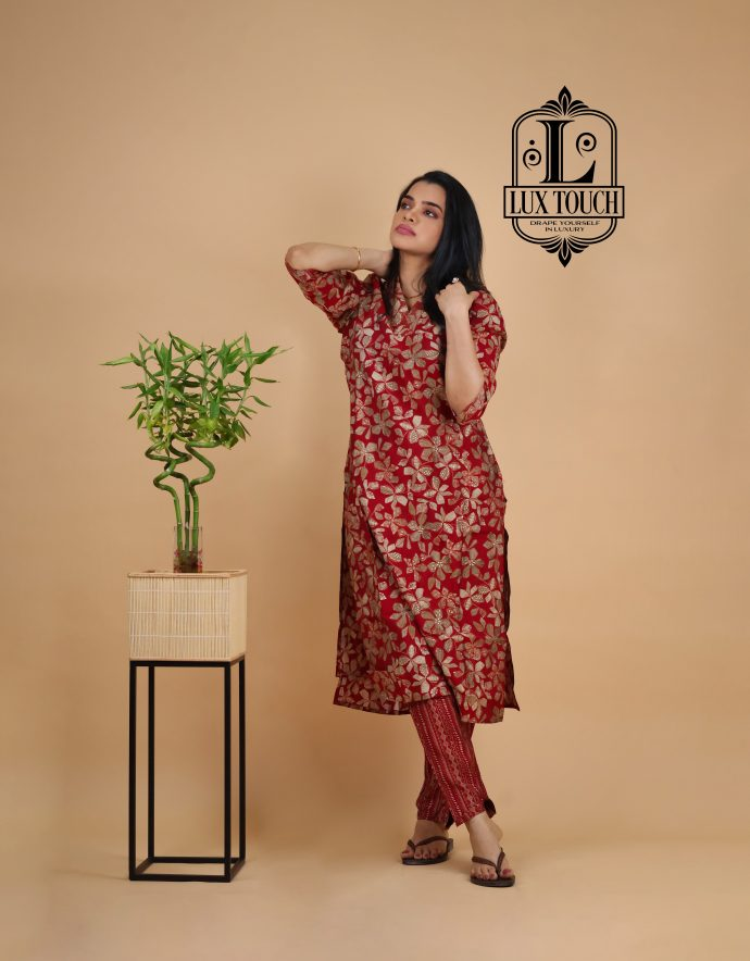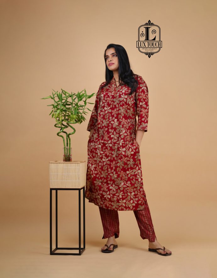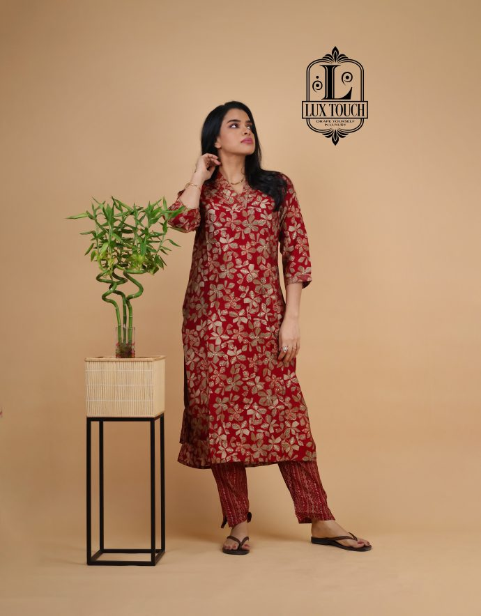The standout feature of this set is the cord detailing, often seen in the form of drawstrings or decorative cords on the neckline, waist, or cuffs. These cords add a contemporary touch to the traditional fabric, elevating the overall design with a stylish, tailored finish. The set is perfect for casual or semi-formal occasions, offering a chic yet comfortable look. The rich, lustrous finish of muslin silk combined with the intricate cord accents makes this set a versatile and refined addition to any wardrobe.